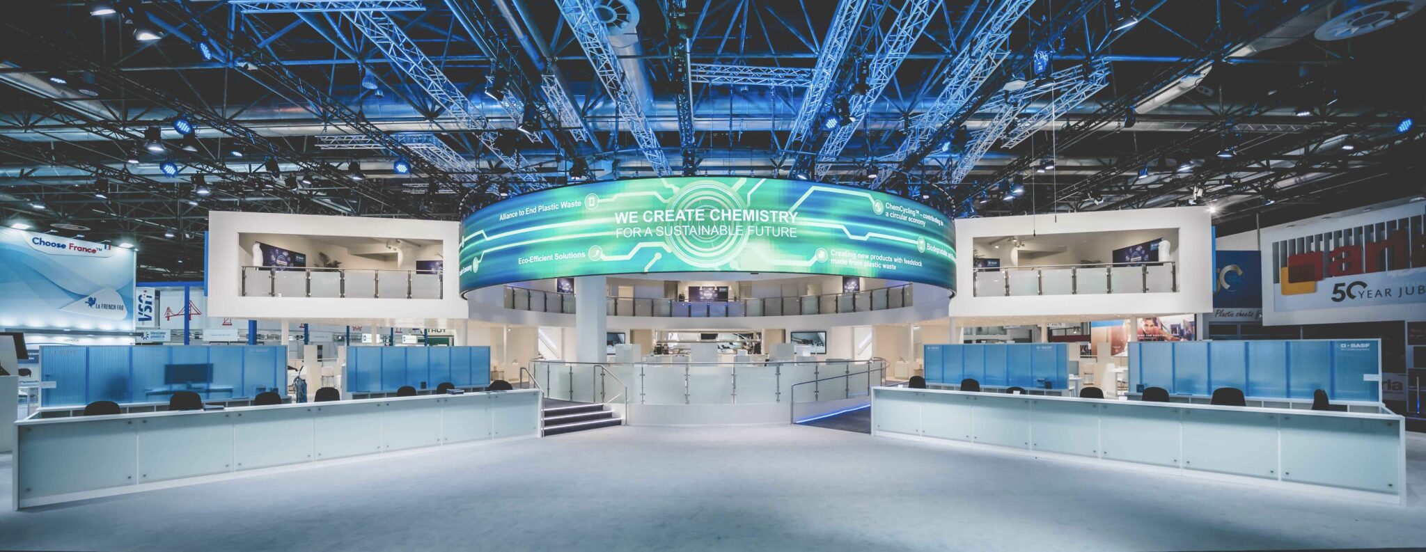 Von der Planung bis zur Umsetzung: Maßgeschneiderte Beleuchtungs- und Medientechnik-Lösung auf der Kunststoffmesse für BASF SE (Bild: Julian Huke Photography)