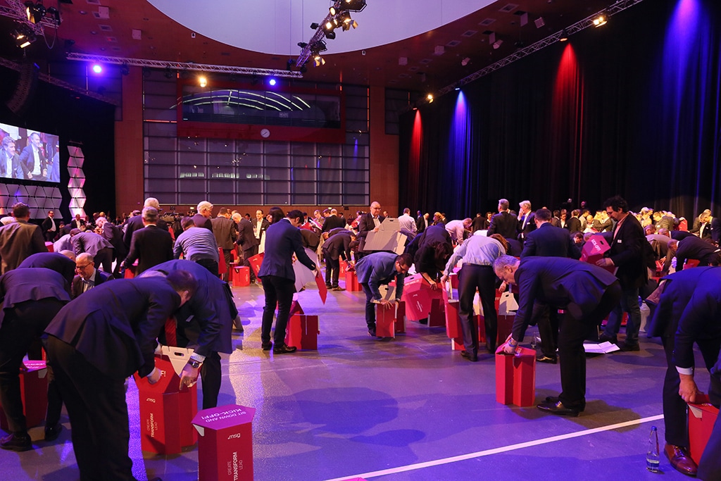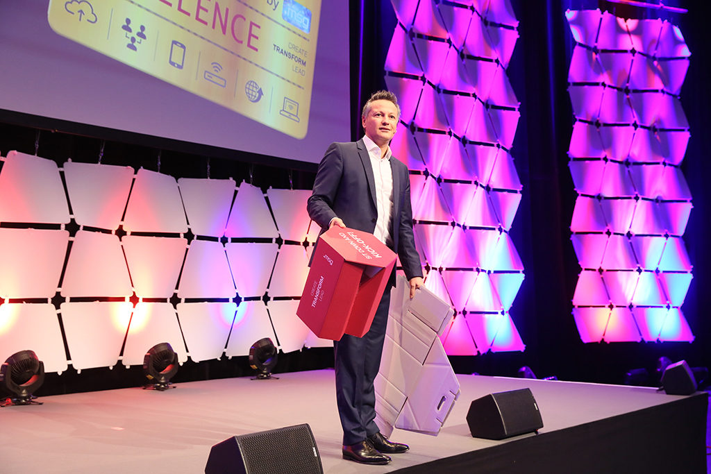 Das Motto des Kick-offs lautete „transform“. Es beschreibt den zweiten Akt einer auf drei Jahre angelegten Storyline, die im vergangenen Jahr mit dem Motto „create“ eingeläutet wurde, um in 2018 in „lead“ zu enden. Mit welcher disruptiven Dynamik sich der Transformationsprozess innerhalb des Unternehmens zeigt, wurde bereits durch die Eröffnung für alle Teilnehmer mehrdimensional erfahrbar. Denn die gesamte Führungsmannschaft fand den Veranstaltungsraum zur großen Überraschung ohne Sitzmöbel vor. Die erste Aufgabe lautete, durch agiles Handeln Hocker aus Pappelementen zu bauen. Ganz nach dem Motto: Wer jetzt nicht handelt, der bleibt stehen!