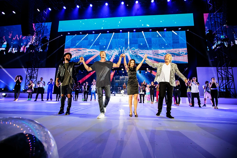 Eine besondere Herausforderung für die Kreativproduktion war der lediglich eine Probentag am Vortag der Veranstaltung mit allen Hauptakteuren und technischen Elementen. Für Licht, Soundcheck und technische Proben blieben nur drei Tage, was für eine Produktion einer solchen Größenordnung mehr als sportlich ist. Nichtsdestotrotz überzeugte BattleRoyal mit einer fehlerlosen Show: Die extra gecastete Gruppe aus 30 Profi-Tänzern begleitete die Reise durch die Jahrzehnte mit mitreißenden Choreographien und die überdimensionale Bühne ließ auch die Herzen der Künstler höherschlagen.