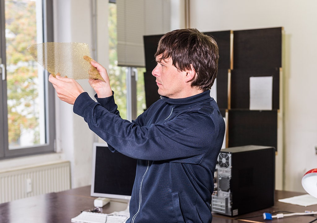 Sie arbeiten ja nicht mit den klassischen Materialien eines Architekten: Ziegel und Beton. Ich habe gesehen, dass Sie mit Metallgeweben experimentieren. Haben Sie auch Wünsche in Bezug auf die Stofflichkeit?