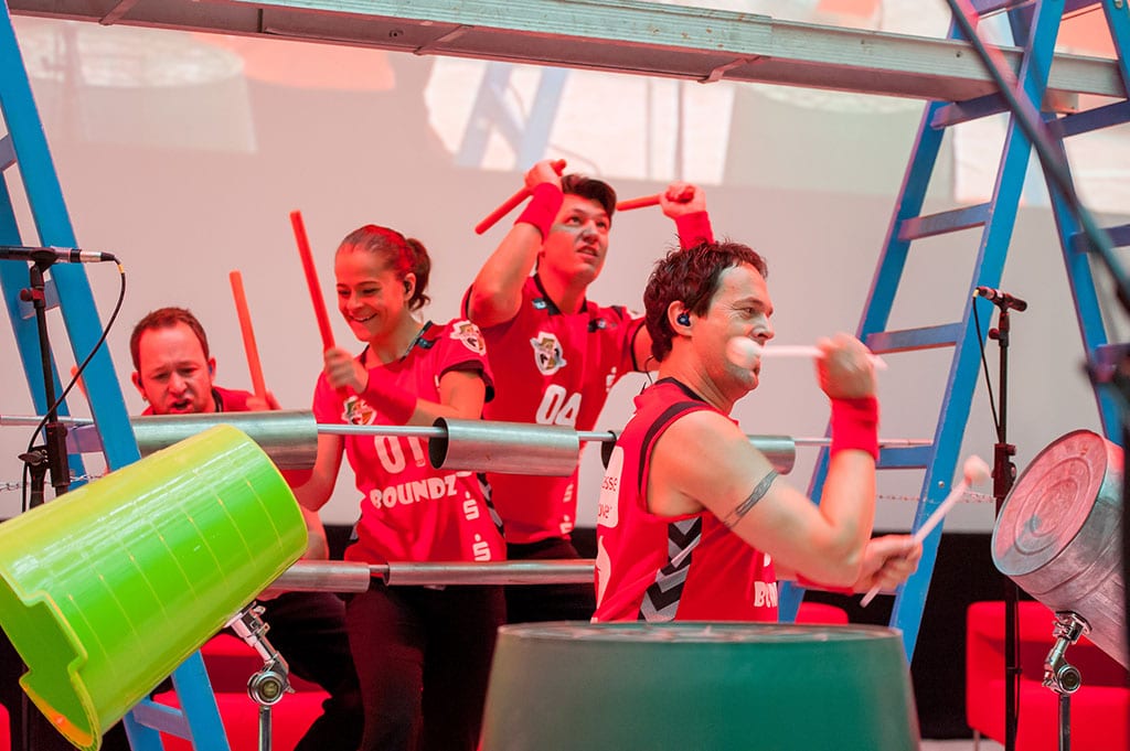 Bei den mitreißenden Auftritten des schlagwerkenden Künstlerkollektivs Boundz hält es Event-Gäste selten auf den Stühlen, denn Boundz hat sich dem „Rhythmus, wo man mit muss“ mit Leib und Seele verschrieben.