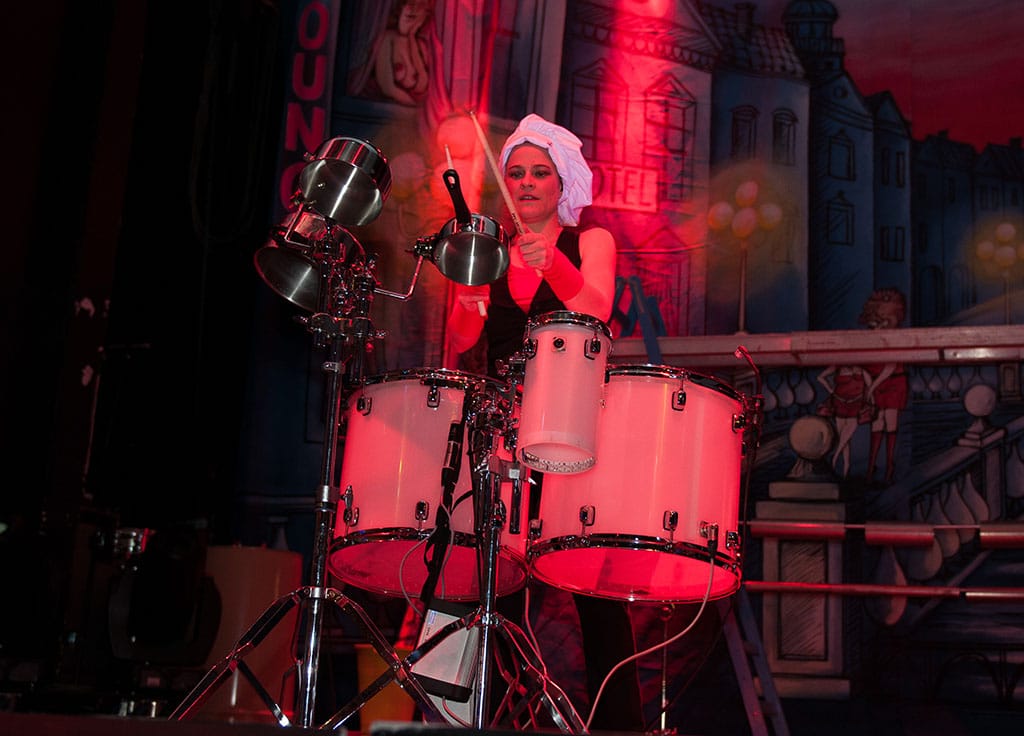 Die Töpfe von Mutti sind schuld!“, sagt Svenja Dunkel und lächelt verschmitzt. Die sympathische Instrumentalistin ist einer der Köpfe von Boundz und kann auf musikalische Erfahrungen in diversen Ensembles, Bands und Musicals zurückblicken. „Seit 25 Jahren dreht sich mein gesamtes Leben um die Bühne“, ergänzt die studierte Chorleiterin, die seit jeher auch ein ausgeprägtes Faible für Artistik besitzt.