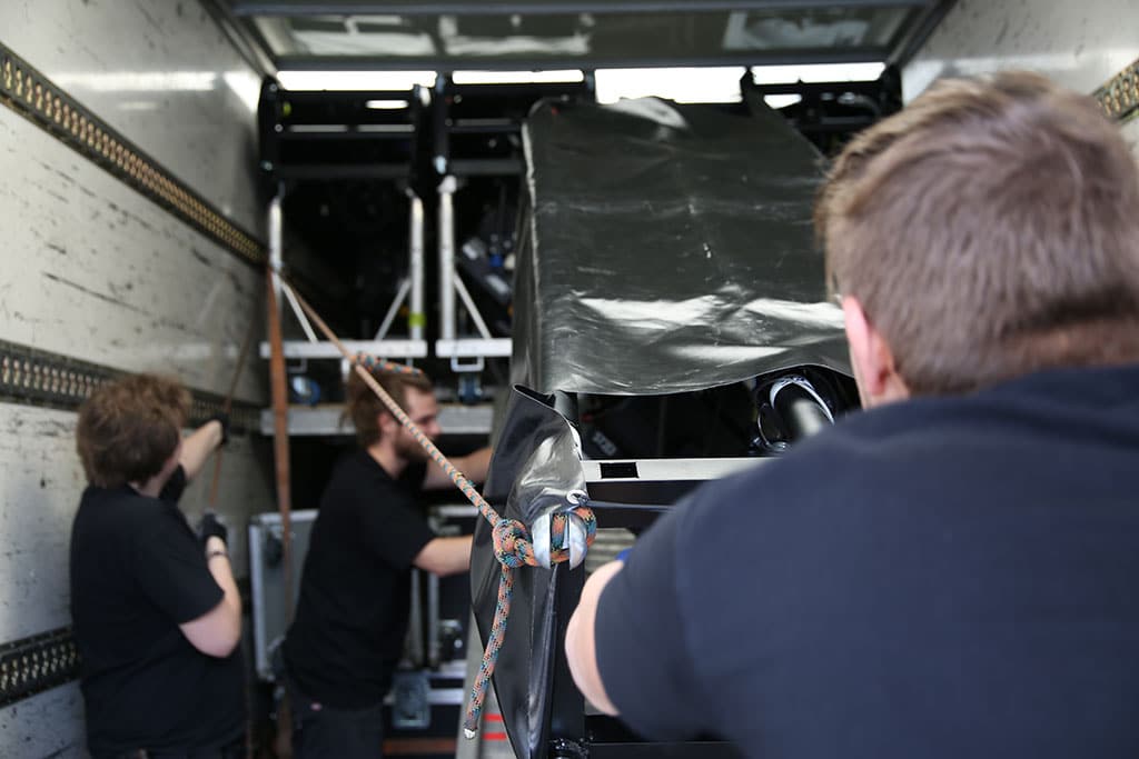 Alle anpacken, bitte: Die Platzierung des Equipments im Truck ist genauestens geplant. (Bild: Sylvia Koch )