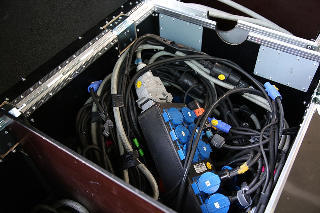 Wie man es aus dem Eventbusiness kennt, gibt es natürlich auch während der Planungsphase einer Veranstaltung einen Faktor, an dem es immer mangelt – und der heißt Zeit. Ein stets eng gestrickter Tourneeplan und wenig Zeit für den Auf- und Abbau vor Ort erfordern aus – geklügelte Vorbereitungen. Im Vorfeld der Touren von Carolin Kebekus und Chris Tall wurde deshalb etwa eine Woche Zeit investiert, um u. a. Systemschränke zusammenzubauen und Kabelbäume zu verkleben, die beim Aufbau der Veranstaltung mit nur wenigen Handgriffen angebracht werden können.