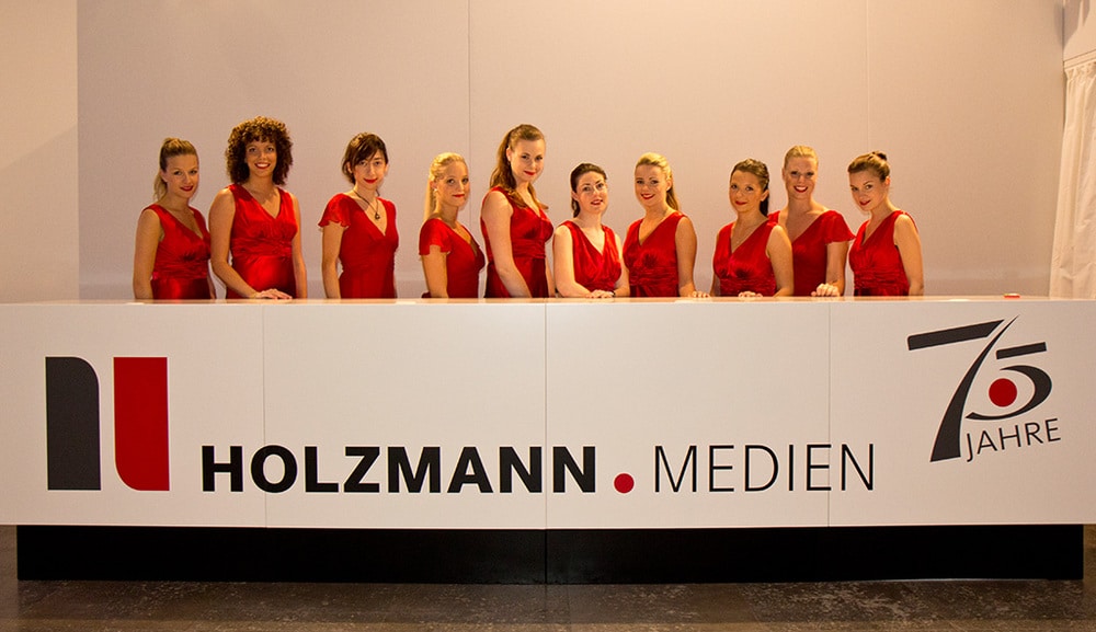 Auch die Kleidung der Servicekräfte war optimal auf das CD der Holzmann Medien abgestimmt. (Bild: Oliver Oelkers)