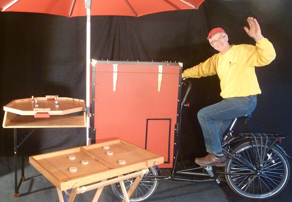 „Mit dem Spielvelo wollen wir den mobilen Charakter der Spielangebote von Spiel-o-Top unterstreichen. Spiel ist Gemeinschaft und Kommunikation, und dies ist mit dem Spielvelo überall möglich“, schwärmt der Spielmacher Hartmut Lies.