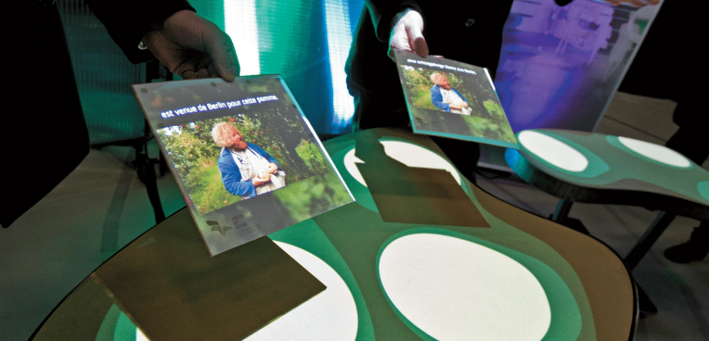 Um trotzdem die Interaktion zu fördern und die Begeisterung bei den Gästen zu steigern, bekommt jeder ein individuelles „Seedboard“ in die Hand. Dieses eigens entwickelte Tool liefert den spielerischen Einstieg für alle Mitglieder der sehr heterogenen Zielgruppe, indem es nicht nur die jeweilige Muttersprache des Nutzers annimmt, sondern vor allem die Steuerung und Auswahl der Inhalte nach eigenen Interessen ermöglicht. Neben der Begeisterung für Technik sollen durch das Konzept des Pavillons aber vor allem Eigenschaften präsentiert werden, die Deutschland normalerweise eher nicht zugeschrieben werden: Humor, Offenheit und Gastfreundschaft beispielsweise. Sie werden auch durch die sogenannten Themenbotschafter vermittelt.