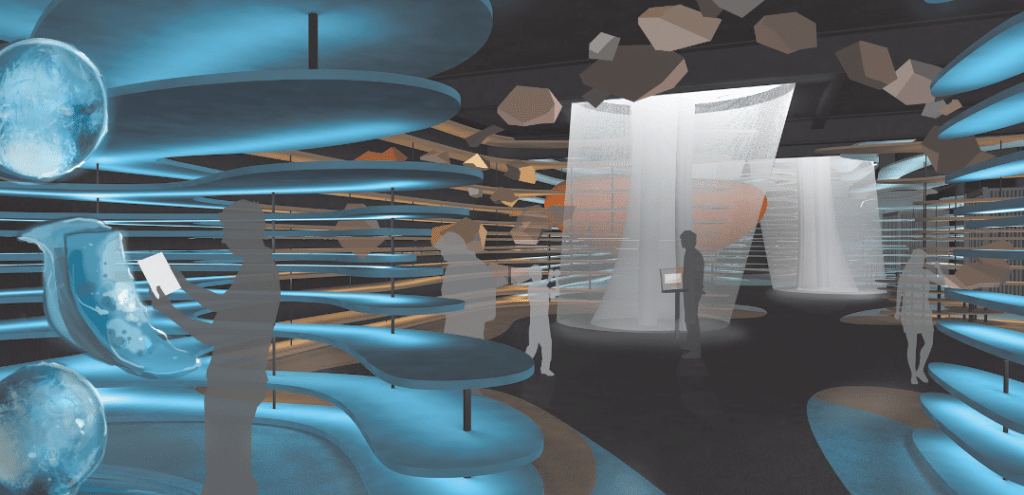 So ist der erste Raum passend zum Thema Wasser gestaltet, der zweite Raum thematisiert den Faktor Boden, im dritten Raum liegt der Fokus auf dem Klima und der vierte Themenbereich behandelt die Bedeutung der Artenvielfalt. Die Übergänge zwischen den Bereichen sind fließend. Nach diesen vier Bausteinen folgt ein Raum über den Konsum und die Produktion von Nahrungsmitteln in Deutschland in der heutigen Zeit, wobei auch der Aspekt der Müllvermeidung angesprochen wird. Anschließend führt der Weg in den sogenannten „Garten der Ideen“, der durch Tageslicht und Grünpflanzen geprägt ist. Hier sollen die Besucher eigene Gedanken entfalten und neue Ideen für ihren persönlichen bewussten Konsum entwickeln. Alle Themenräume enthalten zahlreiche Stationen, an denen Forschungsprojekte und Ideen vermittelt werden.