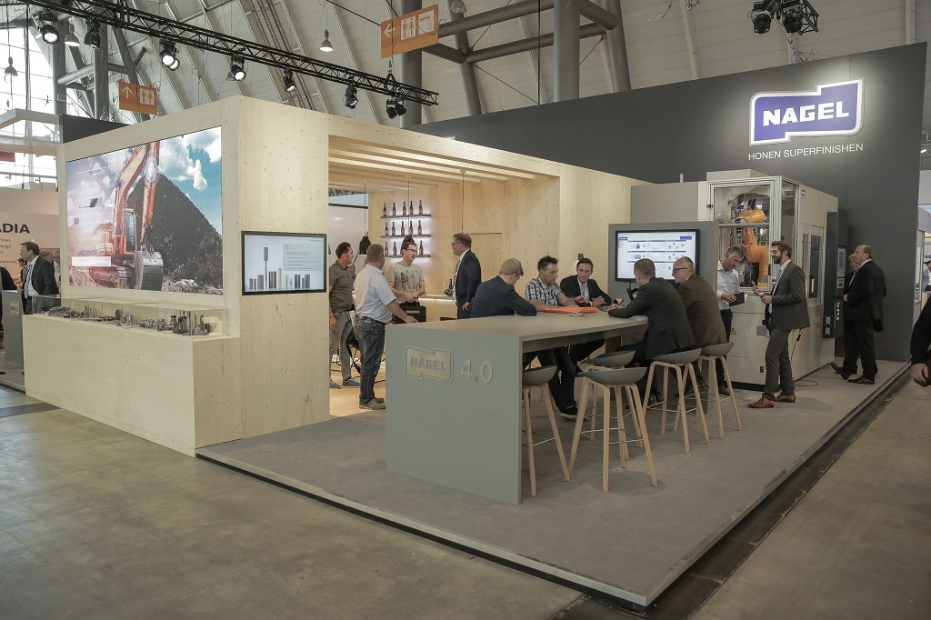 Auf der AMB, der Leitmesse der metallverarbeitenden Industrie, betreute eventuality einen Kunden, der im Standdesign seine neue Positionierung als zukunftsfähiger Partner für Digitalisierung und intelligente Vernetzung von Produktionsprozessen ausdrücken wollte. Dafür gestaltete die Agentur für Erlebniskommunikation ein begehbares reduziertes Designelement aus unbehandeltem Holz, den Cubus 4.0. Dieser diente als Bühne für ein umfassendes Digitaltechnik-Konzept. Im Inneren eine gemütliche Kommunikationsatmosphäre – im Äußeren eine mediale Kommunikationsfläche. Flankiert wurde der Cubus von „Design Thinking“-inspirierten Arbeits- und Präsentationstischen sowie Meeting Separees. Statt überdimensionalen Maschinen informierten großformatige Medienflächen über neueste Innovationen. Durch einen modularen Einsatz ermöglicht die Standarchitektur zudem eine Weiterentwicklung des Grundaufbaus in den Folgejahren.