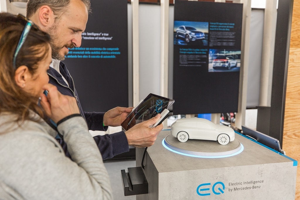 Der Stand klärte spielerisch über das Laden auf und kommunizierte durch eine Mischung aus AR und realem Erleben emotional und sympathisch alles rund um das Thema E-Mobilität bei Mercedes-Benz. On top waren visionäre Köpfe, Top-Influencer und Journalisten zur EQ-Night in Rom geladen; eine Plattform für Menschen mit Ideen und Meinungen zur Zukunft der Mobilität sowie vielen Möglichkeiten, in die Welt von Mercedes-Benz EQ einzutauchen. Extravagante Brandings, spezielle Beleuchtungen, ein eigener EQ-Drink und eine Kinect-Fotoaktion luden die Marke EQ zusätzlich auf.