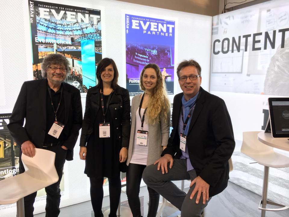 Unser Team am EVENT PARTNER-Stand in Halle 7, Stand B.23: Dr. Walter Wehrhan, Christine Gerber, Sylvia Koch und André Harrs (v.l.n.r.). Wir freuen uns auf euch! (Bild: Sylvia Koch)