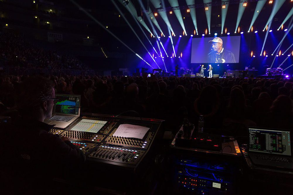 Für die Veranstaltung in der von mehr als 7.000 Besuchern frequentierten Lanxess Arena hatte contour u. a. das Beleuchtungskonzept entwickelt, das insofern ein wenig ungewöhnlich war, als mit Gedanken an den Benefizcharakter des Events und den angestrebten Erlös ein vergleichsweise überschaubarer technischer Aufwand betrieben wurde. Für ein stimmiges (Licht-)Bild sorgten nicht zuletzt Clay Paky A.leda B-EYE K10 und K20, Sunstrips, Martin MAC Viper und diverse Robe Pointe. Bezüglich der Beschallung war mit Gedanken an zahlreiche Wortbeiträge und Lesungen eine gute Sprachverständlichkeit gefragt, wobei auch die Musik von mit Band auftretenden Acts wie Cro kraftvoll wiedergegeben werden sollte. Die PA war erwartungsgemäß aus Komponenten von Meyer Sound zusammengestellt; beschallt wurden der Innenraum der Arena sowie die Ränge bis hinauf zu den Logen. DiGiCo- Digitalmischpulte des Typs SD8 waren am FOHsowie am Monitorplatz zu entdecken; die Crew von Cro hatte ihre eigenen Konsolen mitgebracht und wurde von contour mit einer passenden Multicore-Anbindung versorgt.