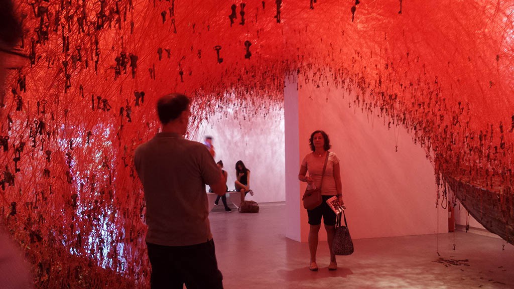 Der aus roten Fäden und Schlüsseln bestehende japanische Pavillon auf der Kunst-Biennale. (Bild: Annette Beyer)
