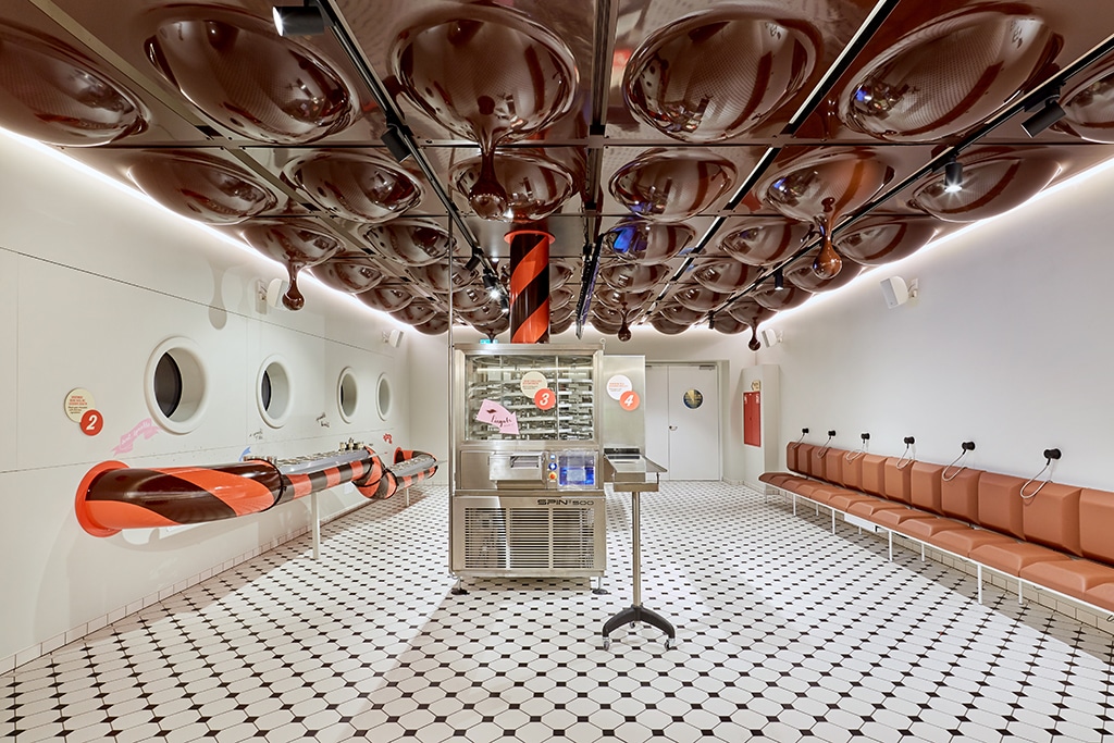 Für diese Suche nach dem Glück habt Ihr eine sehr eigene gestalterische Sprache gefunden. Schon im Briefing stand: Wir wünschen uns eine Schokoladenerlebniswelt, die anders ist, denn in der Schweiz gibt es einige. Also war klar: Nicht noch eine Romantisierung mit Kupferkesseln und Holzlöffeln und „Früher war alles besser“. Unser gestalterischer Assoziationsraum ist die Fabrik, aber eben eine, die mit Glück experimentiert. Klar, dass die ein bisschen bunter, wilder und fantastischer ist.