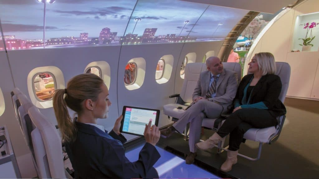 Eine Airbus-Flugkabine demonstrierte die Möglichkeiten branchenübergreifender Kooperationen – inklusive Gedankenanstoß für neue „Instant Branding“-Geschäftsmodelle.