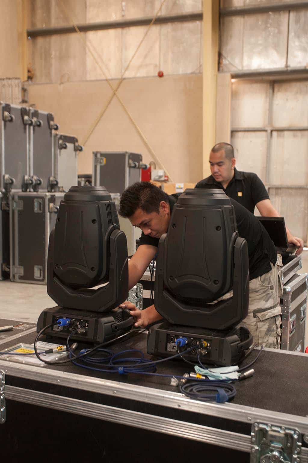 Techniker von Neumann&Müller Veranstaltungstechnik in der Niederlassung in Dubai.