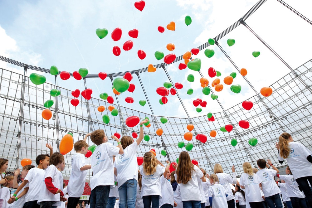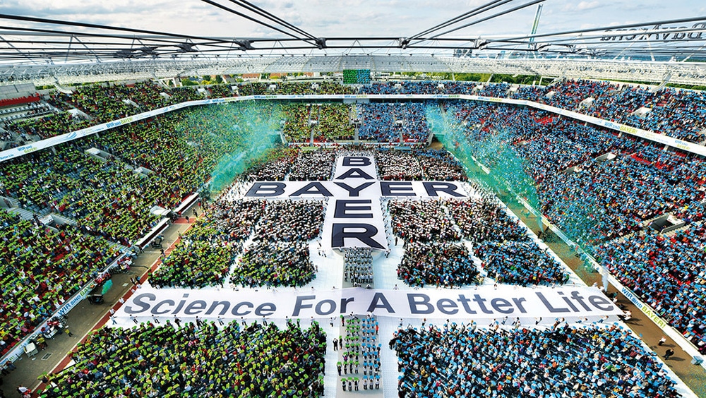 „Wir sind Bayer“ – so feierte Bayer seinen 150. Geburtstag in der BayArena Leverkusen. Dieses Wir-Gefühl wurde in einer interaktiven Geburtstagsfeier erlebbar: 30.000 Mitarbeiter und deren Familien sangen den Anniversary Song, intonierten Bayers Herzschlag und bildeten – als emotionales Highlight – das größte lebende Bayer-Kreuz. 1.500 Freiwillige aus Bayer-Vereinen, prominente Gäste sowie Künstler von Comedy über Musik bis hin zu beeindruckenden Show-Acts gestalteten gemeinsam ein beeindruckendes Fest mit Wow-Faktor, das präsent bleibt – authentisch und begeisternd.