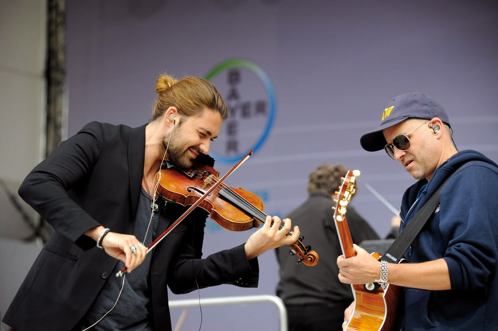 Zum 150. Bayer Jubiläum überraschte David Garrett die Eventgäste mit seiner Geigevorstellung. (Bild: Vok Dams )