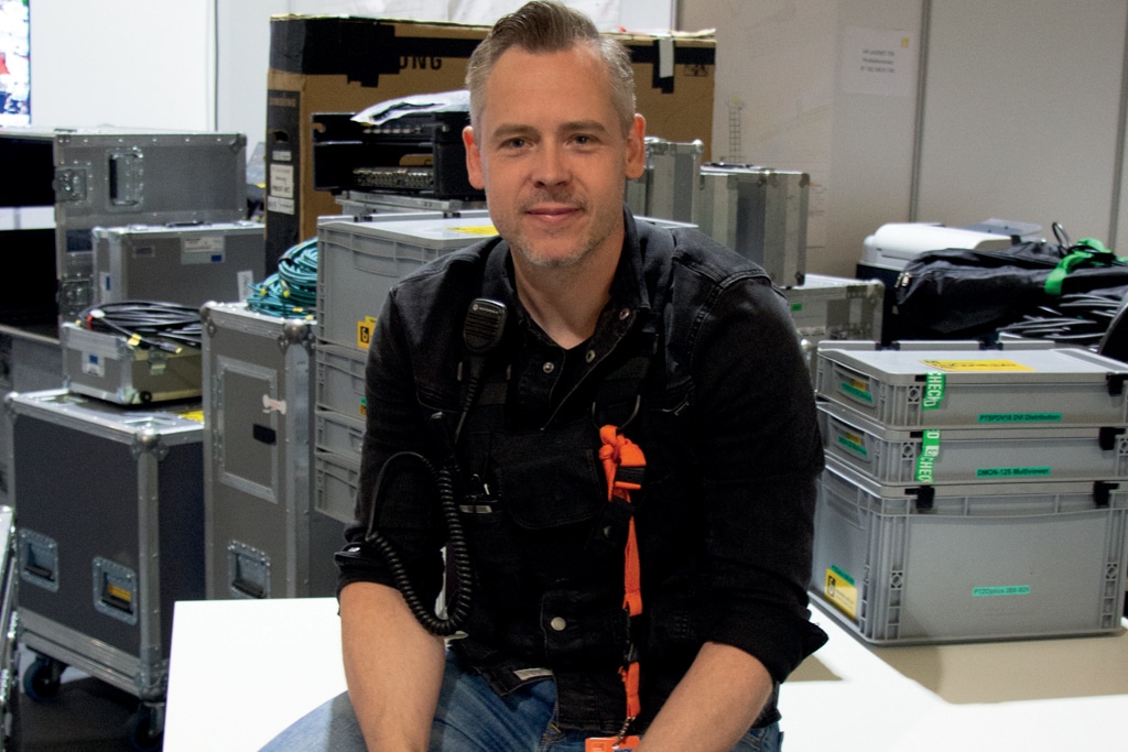 Neumann&Müller Veranstaltungstechnik (N&M) ist seit dem Start der Messe im Jahr 2007 für die technische Umsetzung in den Bereichen Audio, Video, Licht, Netzwerk, Rigging sowie Strom auf der IdeenExpo verantwortlich. Ihr Backstagebereich befindet sich direkt beim Themenbereich „PlanetNachhaltigkeit“. Das Team von N&M durfte ich bereits auf anderen Messen in diesem Jahr kennenlernen. Jetzt möchte ich mehr über die Umsetzung und Planung der IdeenExpo erfahren. Projektleiter Thies Jordan, schon seit über 20 Jahren in der Branche, trägt seit diesem Jahr bei N&M für die IdeenExpo die Verantwortung. „Es handelt sich um ein großes, komplexes Projekt mit vielen Komponenten. Als neuer Projektleiter da reinzukommen, war nicht immer einfach, da bestimmte Dinge im Ablauf schon ganz klar waren. Aber ich habe mich gut reingefunden und bin jetzt sehr zufrieden. Alles läuft gut.“