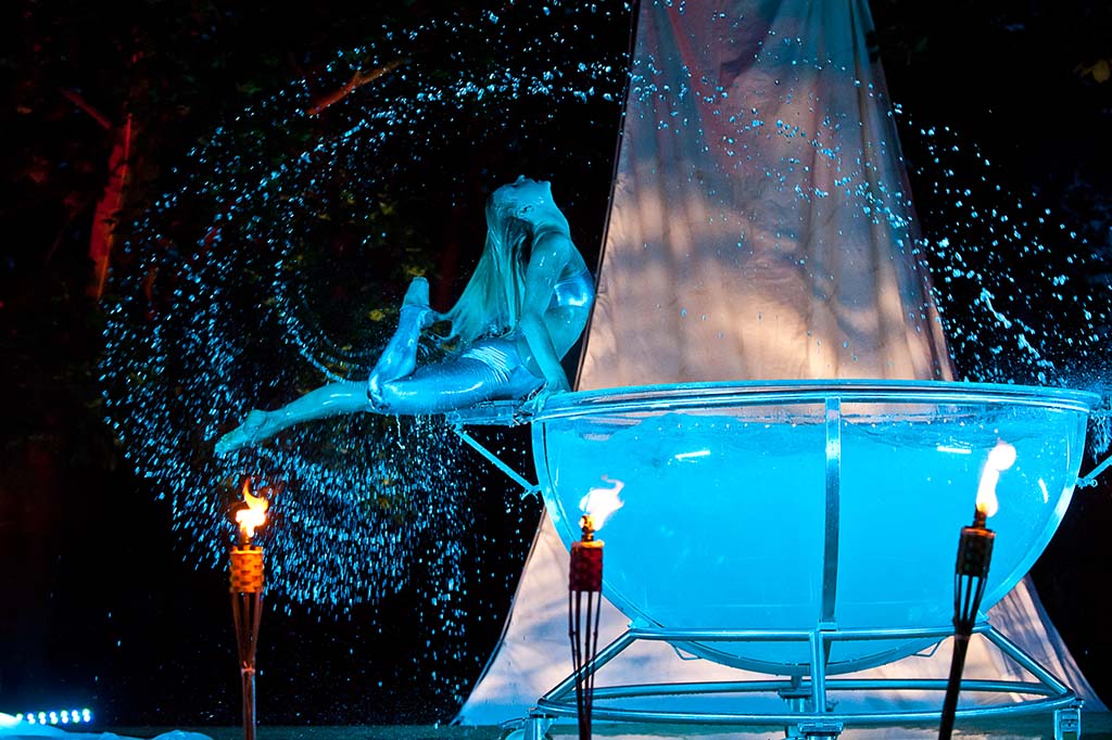 Im Repertoire von Euroviva Entertainment erfreuen sich manche Nummern ganz besonderer Beliebtheit: Immer wieder angefragt wird die „Aquatica“-Performance, die mit einer wassergefüllten Halbkugel samt lasziv davor und darin agierender (weiblicher) Schönheit viel Reizvolles für das (männliche) Auge bietet, und trotzdem nicht auf Hängepunkte oder eine bestimmte Hallenhöhe angewiesen ist. Auf der arabischen Halbinsel ist „Flying Violin“ en vogue – die Inszenierung mit Live-Geigenspiel schwelgt in poetischen Bildern und setzt auf pompöse Kostüme sowie den bereits erwähnten Artistik-Kronleuchter. Einen guten Eindruck zu den vielfältigen Acts vermittelt die Website von Euroviva Entertainment (www.euroviva-entertainment.de), auf der auch zahlreiche Videos zu finden sind.