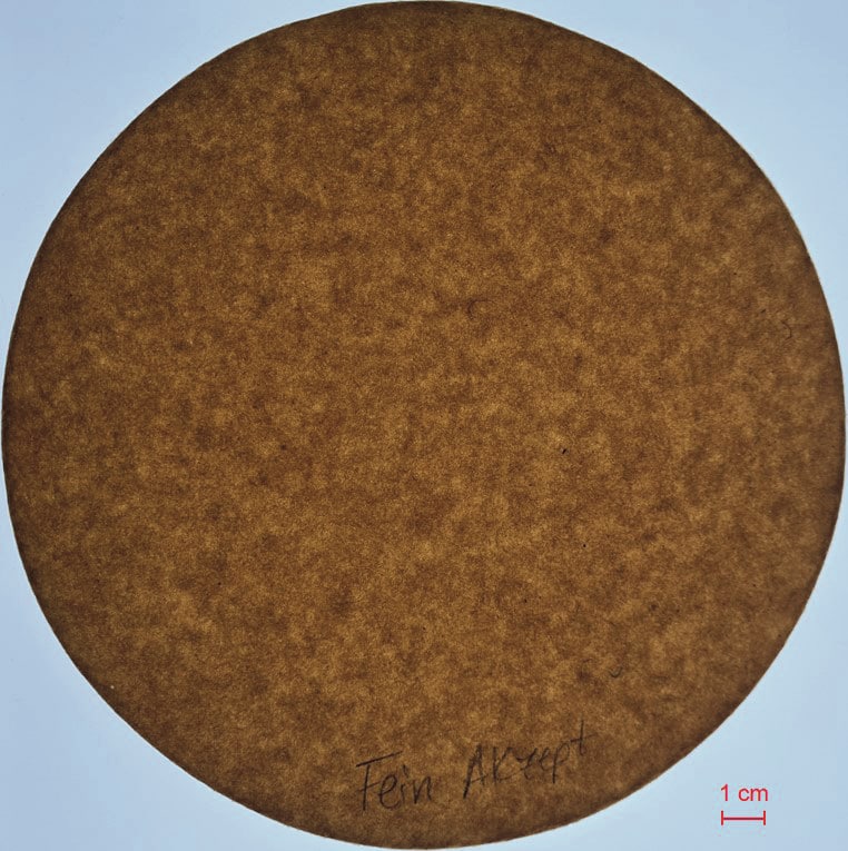 Alle entwickelten Grundelemente wurden bzgl. ihrer Rezyklierbarkeit untersucht. Die Wissenschaftler:innen am PMV nutzten hierfür die CEPI-Methode, welche ein neuer Standard in der Papierbranche ist. Diese Methode testet Produkte und deren Rezyklierbarkeit in Standard-Papierfabriken. In den Sortierungsstufen, die bei dieser Methode durchlaufen werden, fallen verschiedene Rückstände an. Diese werden untersucht, ebenso die Menge an klebrigen Bestandteilen. So können Produkte quantifiziert werden. Den für die Demonstratoren eingesetzten Grundelementen kann so eine positive mögliche Rezyklierbarkeit über den bekannten Altpapierweg bescheinigt werden. Exemplarisch ist in der nachfolgenden Abbildung ein Rezyklat-Papier aus sensorischen Papiergarnen zu sehen. Diese bestehen aus Papiergarnen, die helixförmig mit isoliertem Feinstdraht aus Kupfer umwunden sind.