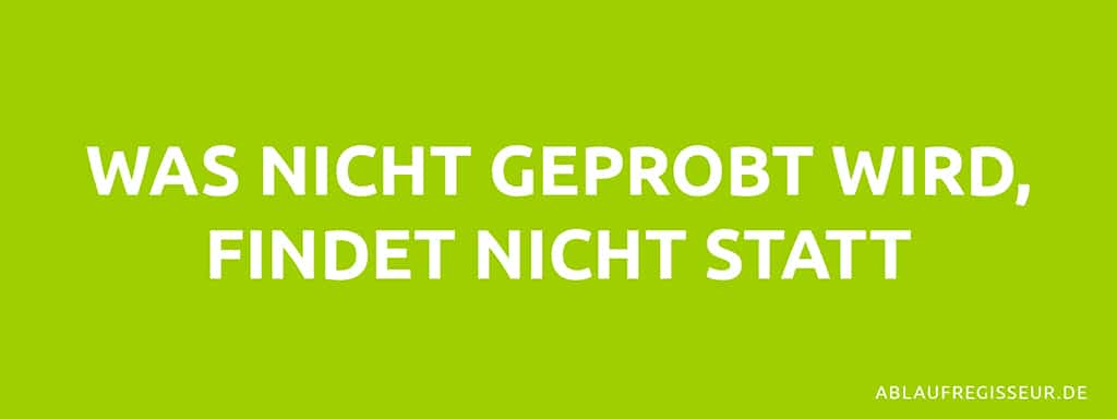 Oft fallen Kunden in letzter Minute noch Änderungspunkte ein. Egal ob es nervöse Assistent:innen mit kleinen Chart-Änderungen oder inhaltliche Ablaufumstellungen sind. Wenn in letzter Minute noch mal geändert wird, dann ist die Wahrscheinlichkeit hoch, dass es schief läuft. Murphys Law. Jemand im Team hat das nicht mitbekommen und schon vergeigt. Also klare Regel: Nach der Generalprobe wird nichts mehr geändert!