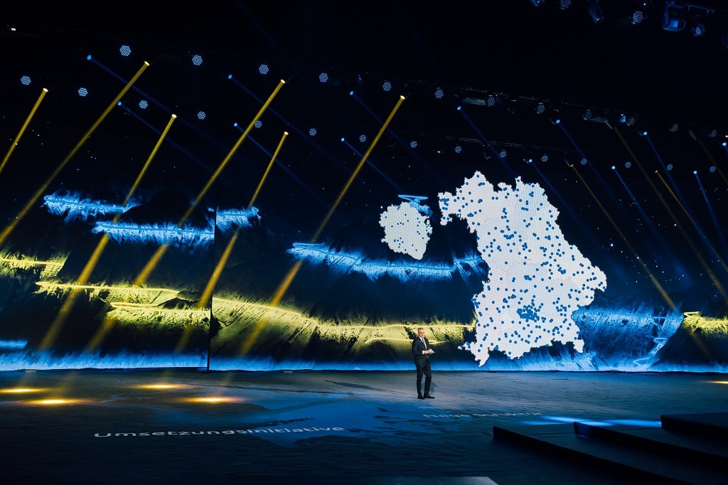 Große Geste auf großer Bühne: Change, Digitalisierung, Kundenzentrierung inszeniert im Raum. (Bild: Katerina Kepka)