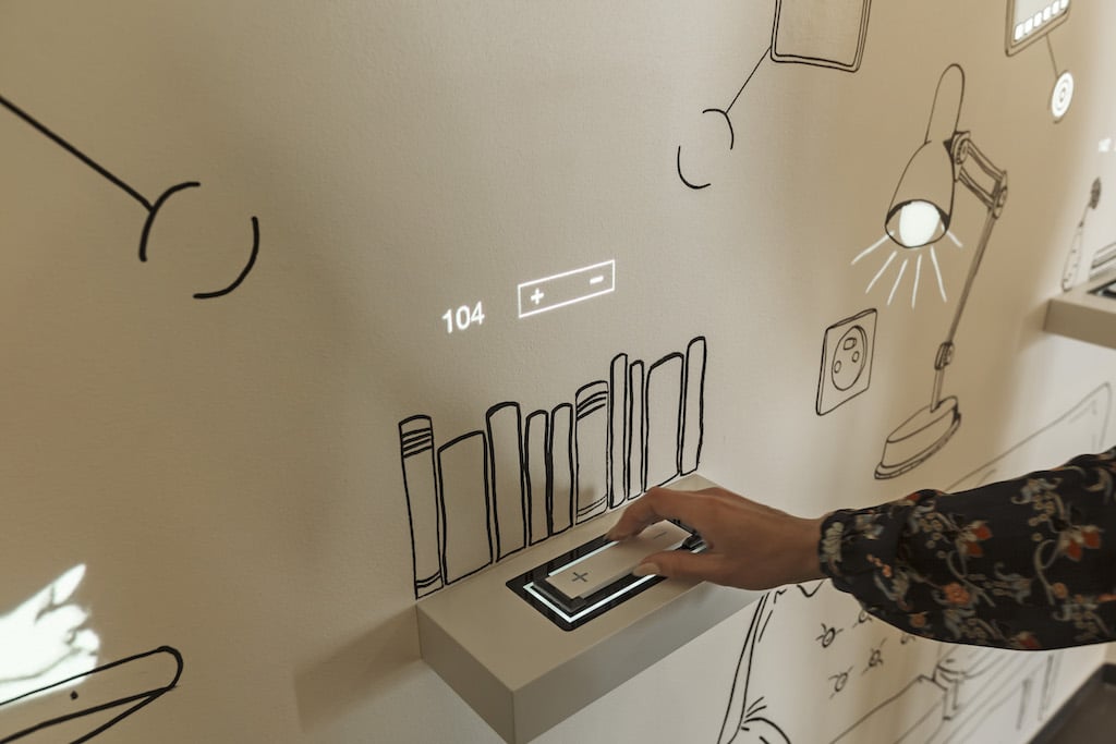 Dazu kommt die Idee der Smartsticks: Jeder Besucher bekommt am Eingang einen Smartstick ausgehändigt, eine Art abstrahierte Batterie, mit der er im Pavillon alle Exponate aktiviert – in seiner bevorzugten Sprache. Mit jedem aktivierten Exponat sammelt der Besucher Wissen – und damit Energie. Am Ende starten alle Besucher gemeinsam mit ihrer gesammelten Energie die Mainshow und verändern symbolisch die Welt ein klein bisschen zum Besseren. Diese Rahmenhandlung ist sehr eingängig und plakativ und die dezente Gamification spornt die Besucher an, sich wirklich alles anzusehen.