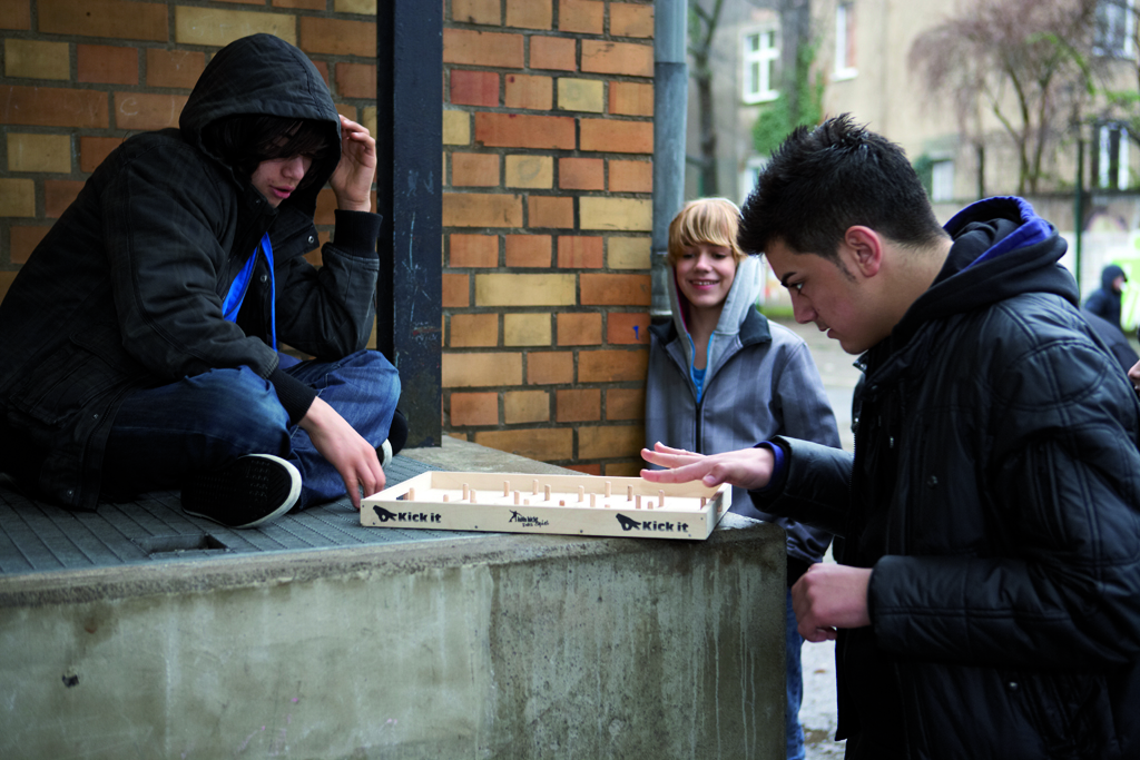 Facts and fiction unterstützt mit Kommunikationsideen und Maßnahmen die Arbeit der Rheinflanke. „Kick it“ ist ein weiteres Beispiel. Jörg Krauthäuser, facts-and-fiction-Geschäftsführer, brachte aus Brasilien ein Holzspielbrett mit, welches dort von Jugendlichen zusammengehämmert wird, um es an die Touristen zu verkaufen. Für die Rheinflanke konzipierte facts and fiction es zu einem Produkt mit dem Namen „Kick it“. Die Erlöse gehen einerseits zugunsten der Rheinflanke und – noch wichtiger: Es wird von Jugendlichen in Schulwerkstätten gebaut. Hilfe hat viele Gesichter.