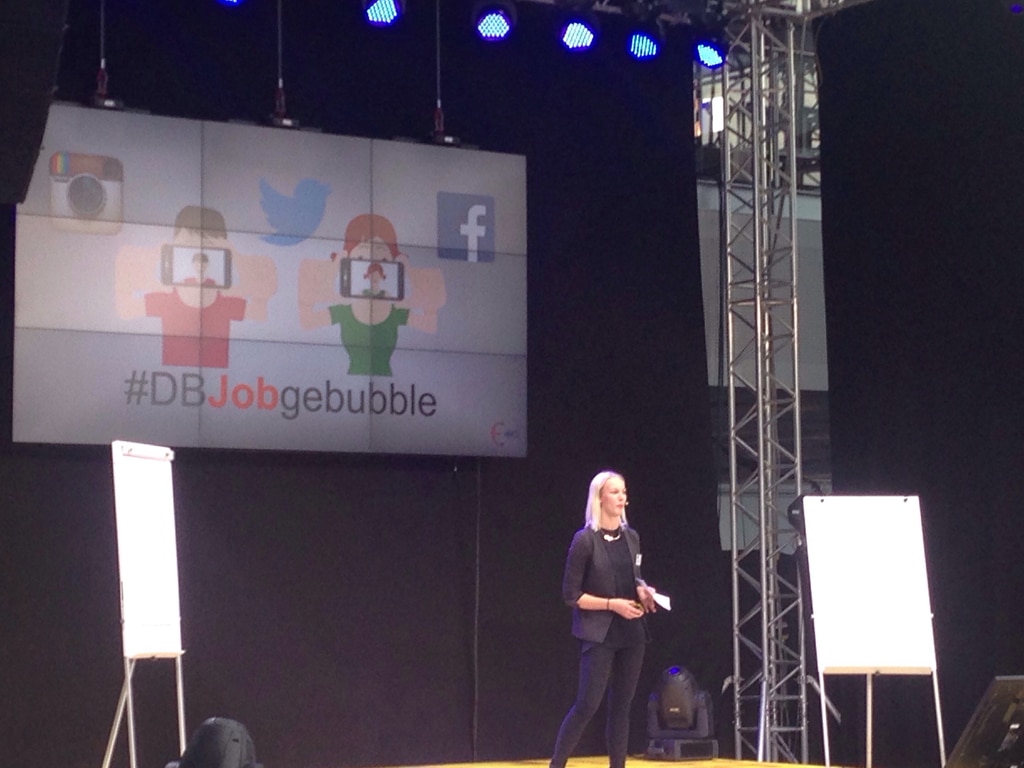 Es kann somit losgehen. Acht Minuten hatte jede der vier Hochschulen Zeit, ihr Recruiting-Konzept für die Deutsche Bahn ausführlich im Pitch darzustellen. Die Hochschule Bremen entführt in die fremde Welt Transportania. Die Fresenius Hochschule Köln macht aus dem Bewerber einen Traingee (als Bewerber gesucht werden Ingenieure und IT’ler verschiedenster Art) und nimmt ihn mit auf das Traingee Pop Festival. Die Hochschule Heilbronn will Deutschland mit verschiedenen Aktionen zum Leuchten bringen. Die EBC Hamburg setzt voll auf den DB-internen Begriff der Bubbles und kombiniert Roadshow und Pop-up Store. Und die FHM Köln stellt Waggons mit verschiedenen Lebensstationen der anvisierten Studenten inklusive integrierter Bahn-Verknüpfungspunkte aus.