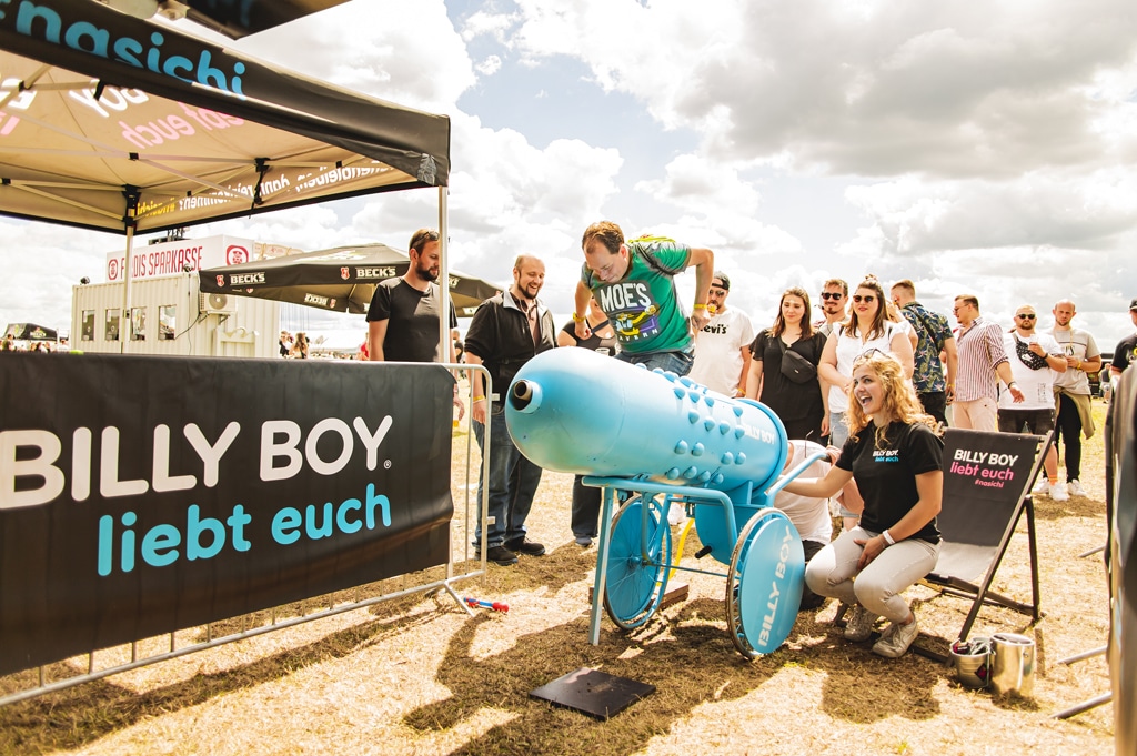 Heyen: Beim Fußball müsste man nackig übers Feld flitzen! Sei dir unbedingt bewusst, wo du bist und was um dich herum stattfindet. Du konkurrierst mit unzähligen Erlebnissen, und wenn du die Leute nachhaltig aktivieren willst, musst du dir was einfallen lassen. Chillen im Markenraum reicht meistens nicht mehr aus. Zum Chillen ja, aber nicht für einprägsame Erlebnisse. Und du bist selten allein. Auf Festivals sind in der Regel viele Marken, die sich was einfallen lassen.