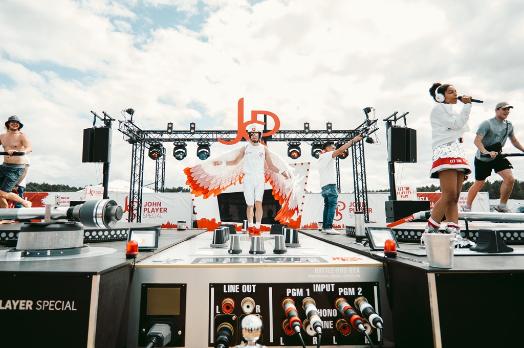 „John Player“: Aktivierend – die größten, durch Muskelkraft und Taktgefühl betriebenen Turntables der Welt (Bild: HYPEUP GmbH)