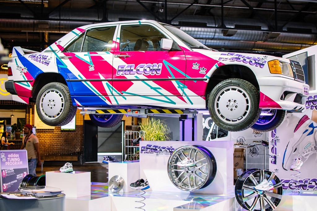 Der Stand bildete ein ikonografisches 90er-Jahre Setting für den retro-neuen Sneaker und für eine neue Generation selbstbewusster junger Frauen. Ein in Pink und Türkis gehaltener Mercedes 190 auf der Hebebühne und ein Motorrad mit rotierendem Hintergrunddruck zwischen neon-beleuchteten Alufelgen und Chromdisplays markierten die Ästhetik dieser Ära. Dänische Superstar-Musikerin MØ bot eine intime Performance, die man hautnah miterleben konnte, und beteiligte sich zusammen mit Slavka Jancikova (Global Category Director for Women’s Footwear), Hypebae-Redakteurin Nav Gill und Moderatorin Wana Limar an einem Panel zu Selbstvertrauen, weiblicher Selbstbestimmung, Inspiration und Ikonen der 90er.