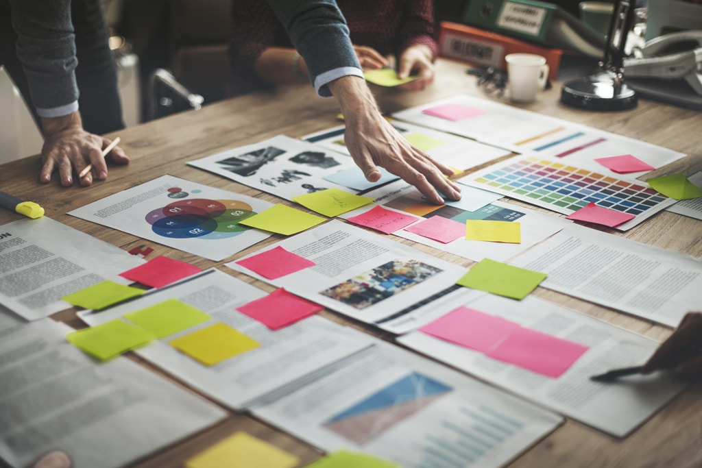 Briefing, Brainstorming, Tisch mit vielen Notitzen(Bild: Shutterstock / Rawpixel.com)