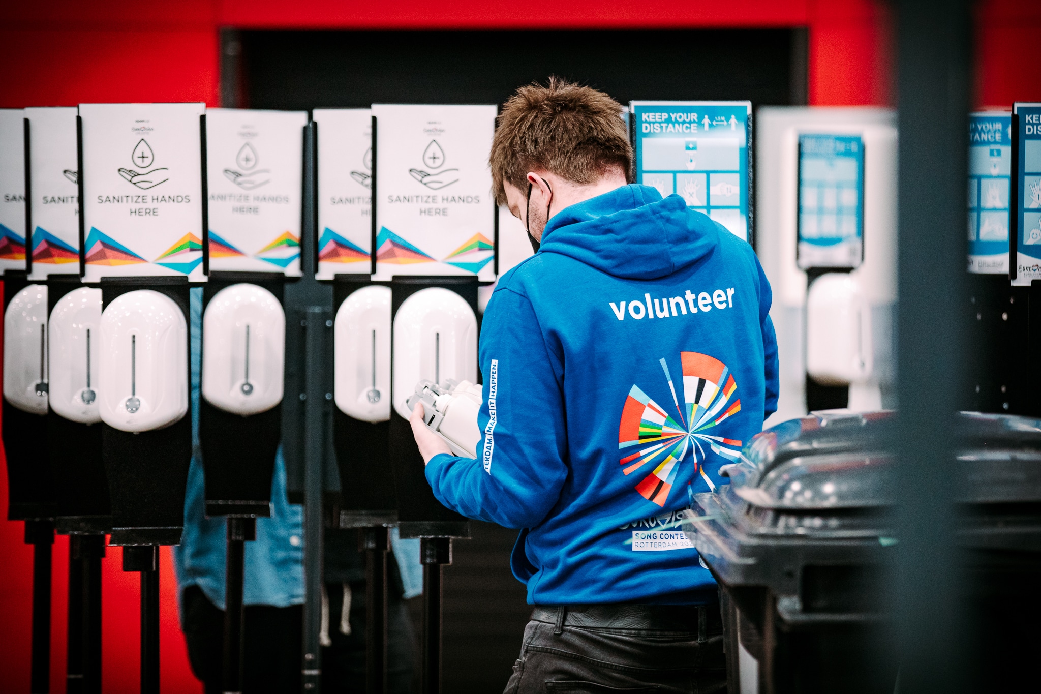 Viel hilft viel: Neben Tests und Masken kam beim ESC auch weiterhin Desinfektionsmittel zum Einsatz. (Bild: Nathan Reinds // www.nathanreinds.nl)