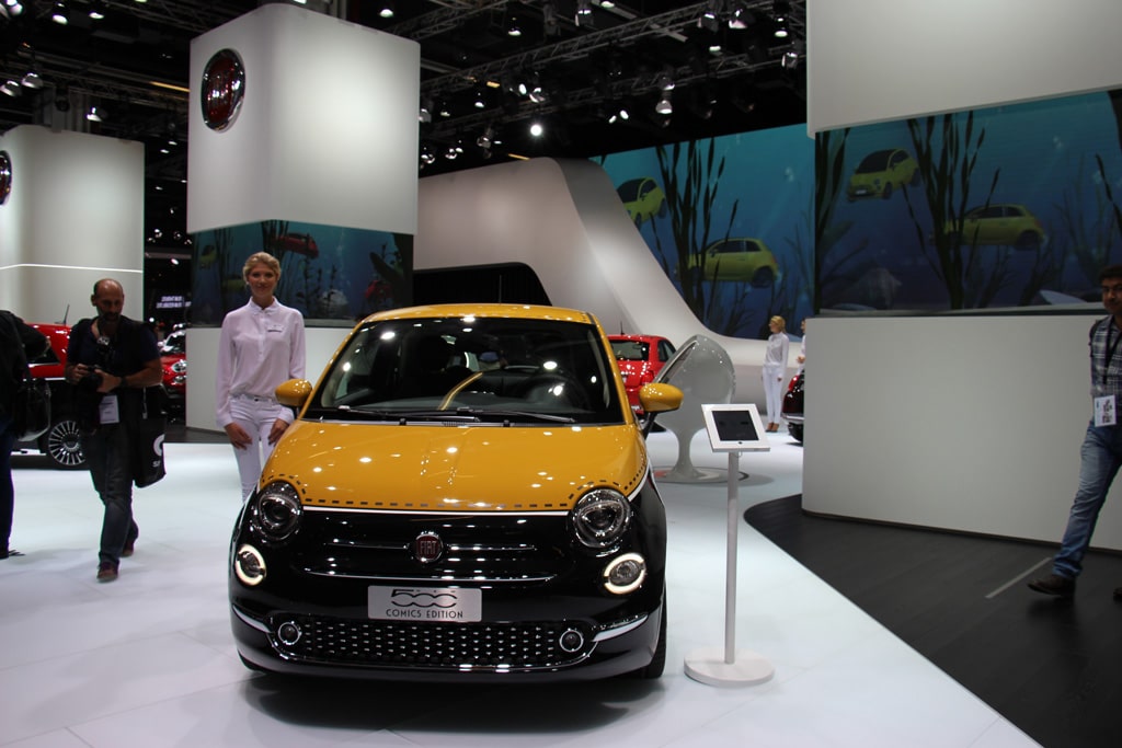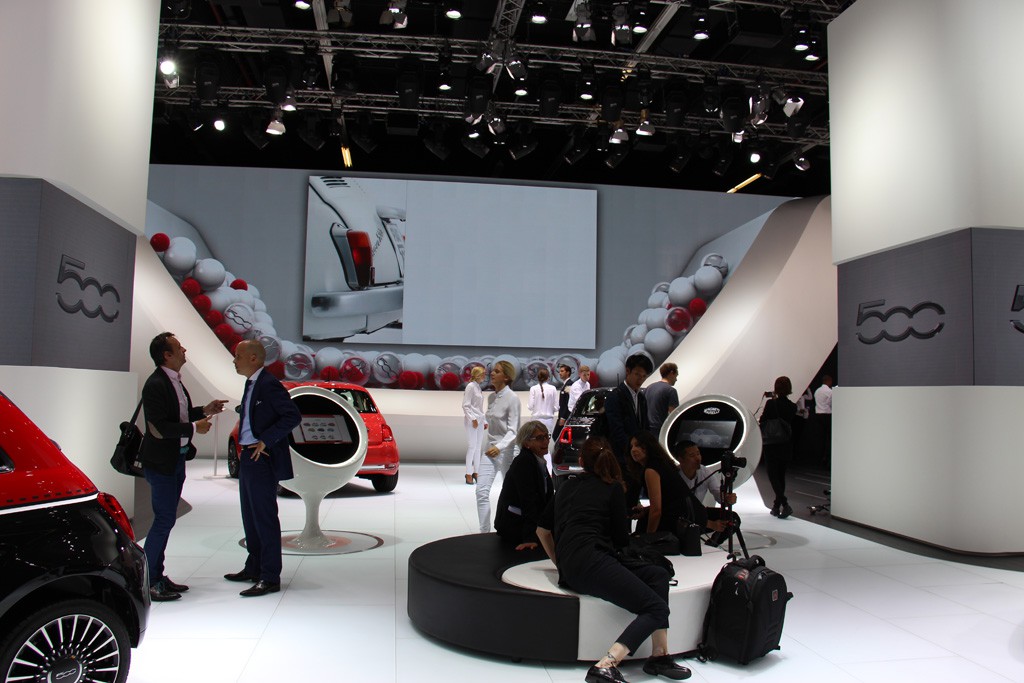 Fiat 500 Comics Edition auf der IAA 2015 (Bild: Marcel Courth)Fiat Lounge-Ecke auf der IAA 2015 (Bild: Marcel Courth)Fiat Messestand auf der IAA 2015 (Bild: Marcel Courth)