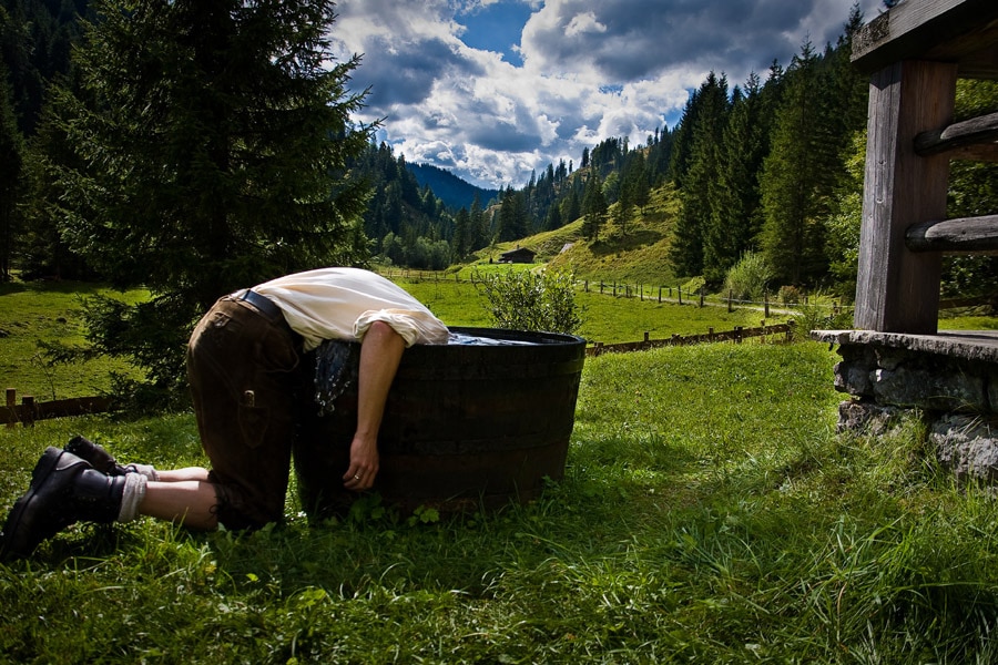 Ein Mitarbeiter der ortsansässigen Spurensicherung hastete nervös in seinem Tatort hin und her und war sichtlich erleichtert, als einige der Teilnehmer bei der Spurensicherung halfen. „Ausgestattet“ mit den Beweisen ließ sich die Gruppe in der Berghütte nieder, alle Gäste waren vertieft in Gespräche, als plötzlich, mit Sirenengeheul und quietschenden Bremsen, ein typisch bayerischer Kommissar in Lederhosen und Janker die Hütte betrat. Als man sich am Ende des Abends, nach dem Genuss des rustikalen Hüttenmenüs und der Inszenierung des Original Hüttenkrimis, mit lodernden Fackeln wieder auf den Weg ins Tal machte, waren sich alle einig: „So viel gelacht haben wir wirklich noch nie miteinander, das ist wirklich das Highlight der bayerischen Abendunterhaltung.“