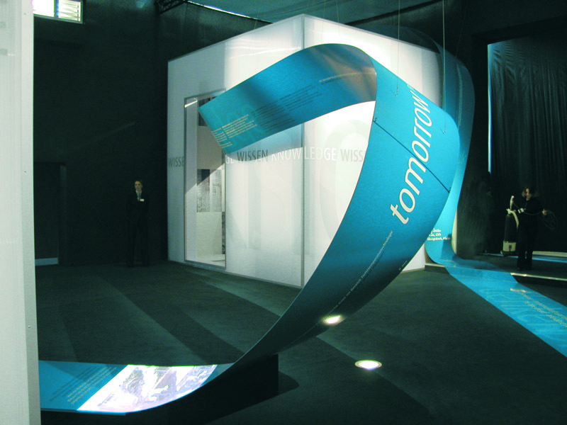 Das 125 Meter lange „Linde-Band“ erzählte den 1.000 geladenen Gästen die faszinierenden Ideen und den Innovationsgeist des Konzerns. 180 Meter gebogener Stahl, in der Hausfarbe, wand sich durch die Ideenwelt von Linde. War „roter Faden“, Wegweiser und ultimativer Informationsträger. Beginnend am Eingang – der Gründung – bis zur Bühne im Festaktsaal – der aktuellen Gegenwart. Dazwischen die Blue Boxes. Sie vermittelten die Unternehmenskompetenzen, als Erlebniszonen mit akustischen, olfaktorischen und haptischen Impressionen, auf den Punkt. Der Festakt inszenierte das Thema Ideen als zentrales Element im Unternehmen. Highlight war das musikalische Spiel auf einem hierfür entwickelten Gasflaschenglockenspiel – 32 präparierte Gasflaschen –, welches speziell zu diesem Anlass komponiert wurde.