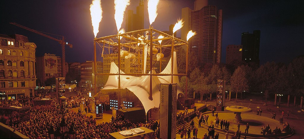 A-Motion Tour/Mercedes-Benz A-Klasse-Tour 1997 mit La Fura dels Baus. Konzept: Atelier MArkgraph, Architektur: Kauffmann Theilig & Partner, Umsetzung: Clausecker & Bingel (Bild: Atelier Markgraph )