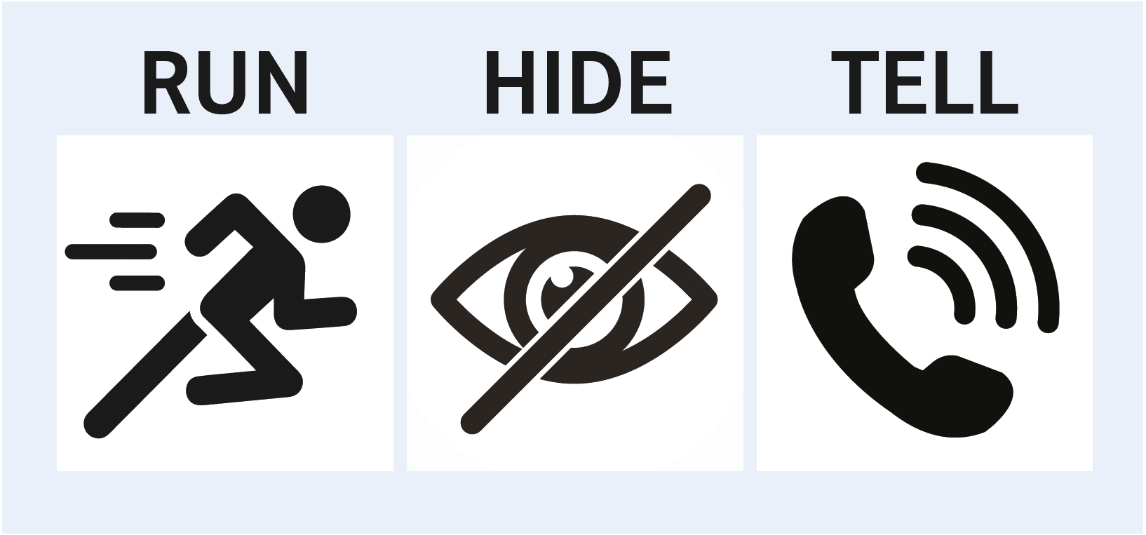 Im Gegensatz zum Entstehungsbrand ist bei einem bewaffneten Angriff kein proaktives Vorgehen gefragt. Im Gegenteil: Run – Hide – Tell heißt die Devise. Also: Was ist zu tun? Weglaufen. Absolut. Und wie gut wäre es, wenn die Wege bekannt wären, die Wege, die in sichere Bereiche führen. Aber halt! „Sichere Bereiche“ darf man nicht sagen, denn das macht den Leuten Angst. Kein Scherz, sondern eine Reaktion auf den Vorschlag zu einer entsprechenden Sicherheitsunterweisung. Die Begründung erinnerte ein wenig an den berühmt-berüchtigten Satz „Ein Teil dieser Antworten würde die Bevölkerung verunsichern“, der im Kontext der Ereignisse von 2015 fiel, als der damalige Bundesinnenminister sein fehlendes Vertrauen in uns mit uns teilte.