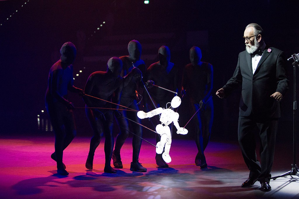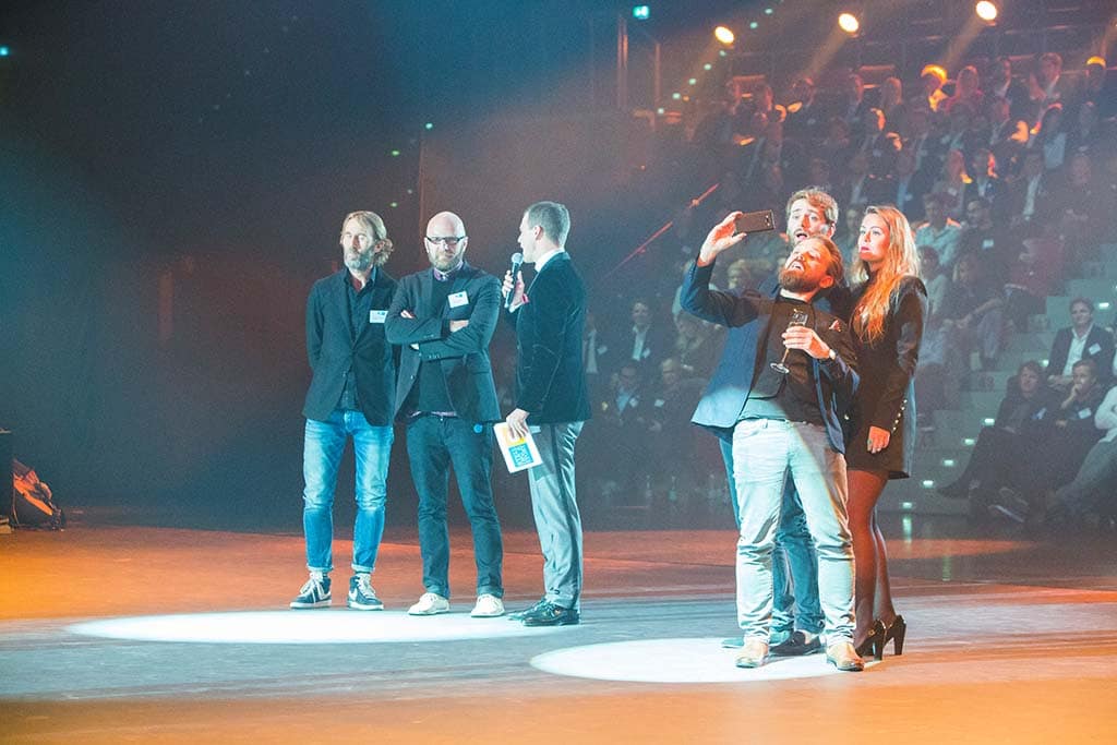 Das Team von Eventuality, das dieses Jahr für die Show verantwortlich zeichnete, hatte die schwierige Halle – die Ludwigsburger Basketball Arena – gut in den Griff bekommen. Gäste und Nominierte saßen sich auf den Längstribünen gegenüber, die Show auf dem Infield bespielte also zwei Richtungen, wobei die Nominierten zumeist nur die Rückansicht des Moderators zu sehen bekamen. Friedrich Lichtenstein erzählte, unterstützt vom leuchtenden Dundu, die Schöpfungsgeschichte einer Idee. Stimmungsvolle Bilder, großartige Stimme, aber auch sehr vorhersehbar. Das Spannendste war, ob und wann er es sagen würde: sein Wort. Er sagte es nicht. Supergeil.