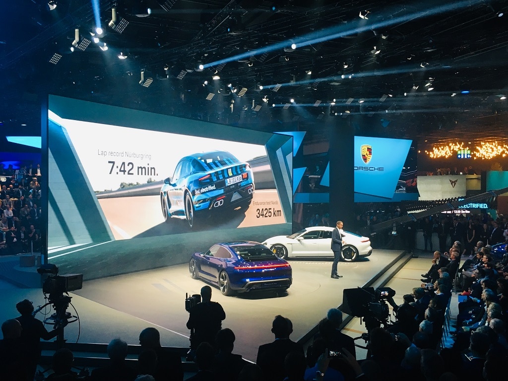 Der neue, vollelektrifizierte Porsche Taycan steht klar im Zentrum des Porsche Auftritts auf der IAA 2019. (Bild: tisch13 )