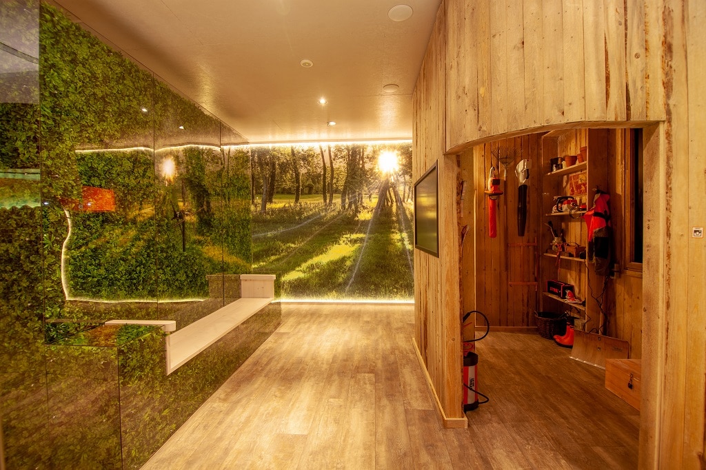 Der Eintritt in den Pavillon führte direkt in die Stihl Welt, die sich mittels illuminierter Großflächen, interaktiver Displays mit Produkt- und Unternehmensinformationen und klassischen gartentypischen Szenarien präsentierte. Ein Gartenzaun gewährte „voyeuristische“ Einblicke in „Nachbars Garten“, in fantasievollen Schaukästen warteten liebevoll gestaltete Miniaturgartenwelten – Storytelling at it‘s best. Ein Baumstamm mit der neuesten Motorsäge MS 500i lud zu Selfies ein. Das Herz des Pavillons aber war der authentisch eingerichtete Geräteschuppen, auf den die Besucher auf zwei Arten reagierten: „Wie bei mir zu Hause!“ oder „So einen wollte ich schon immer!“.
