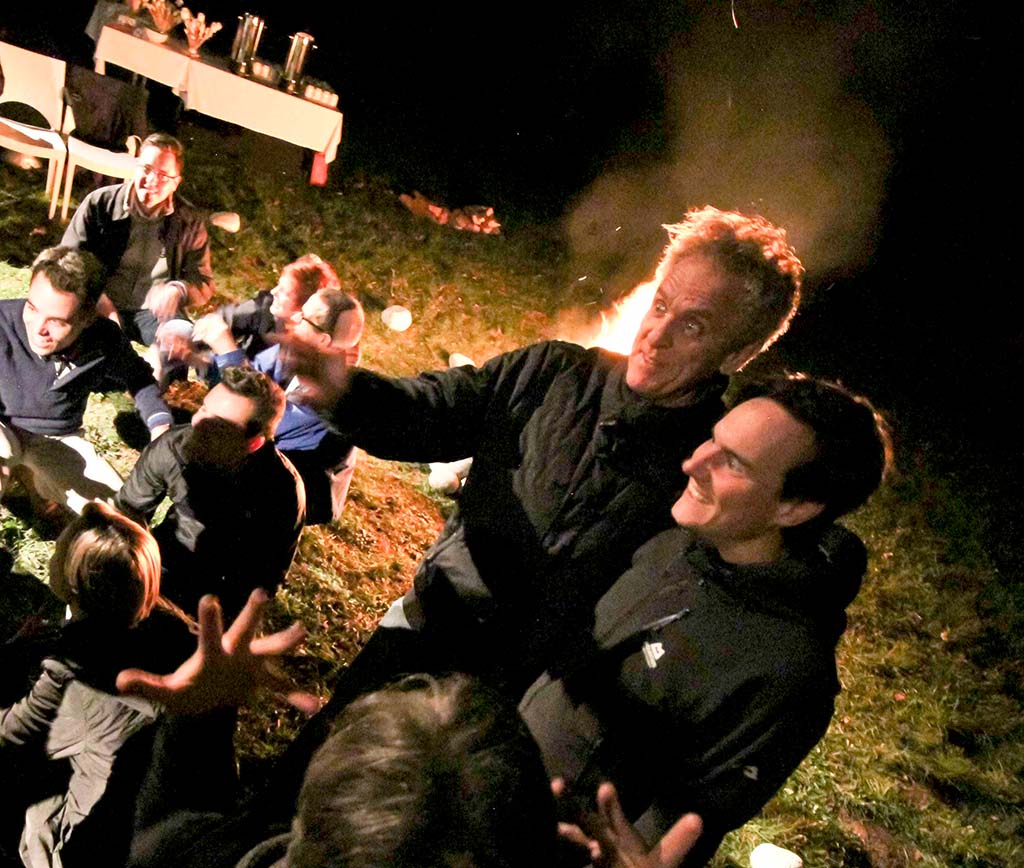 An der Feuerstelle coachte Ueberspringer die Bilfinger-Mitarbeiter. (Bild: Ueberspringer )