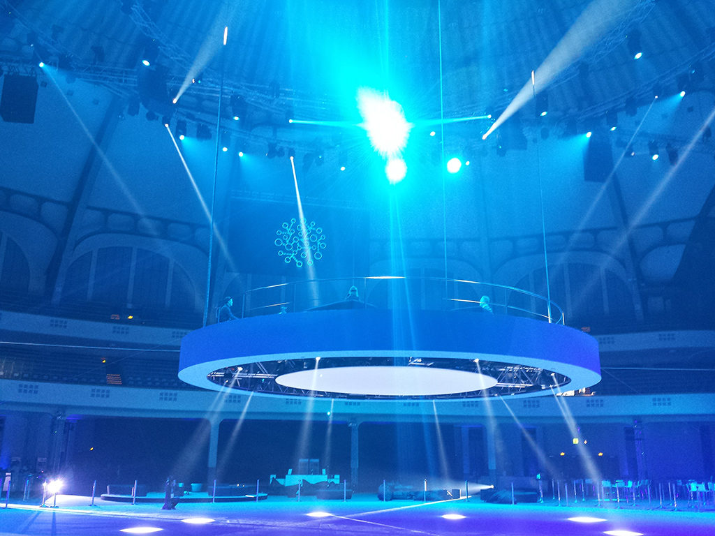Knifflig: Die schwebende Bühne beim IEC Meeting (Bild: Falco Zanini)