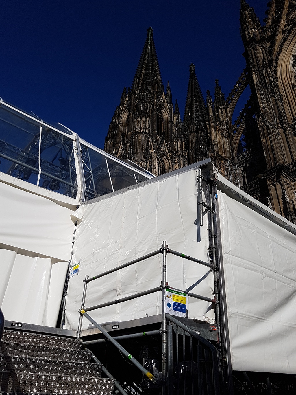 Bühnenbau am Kölner Dom (Bild: Falco Zanini)