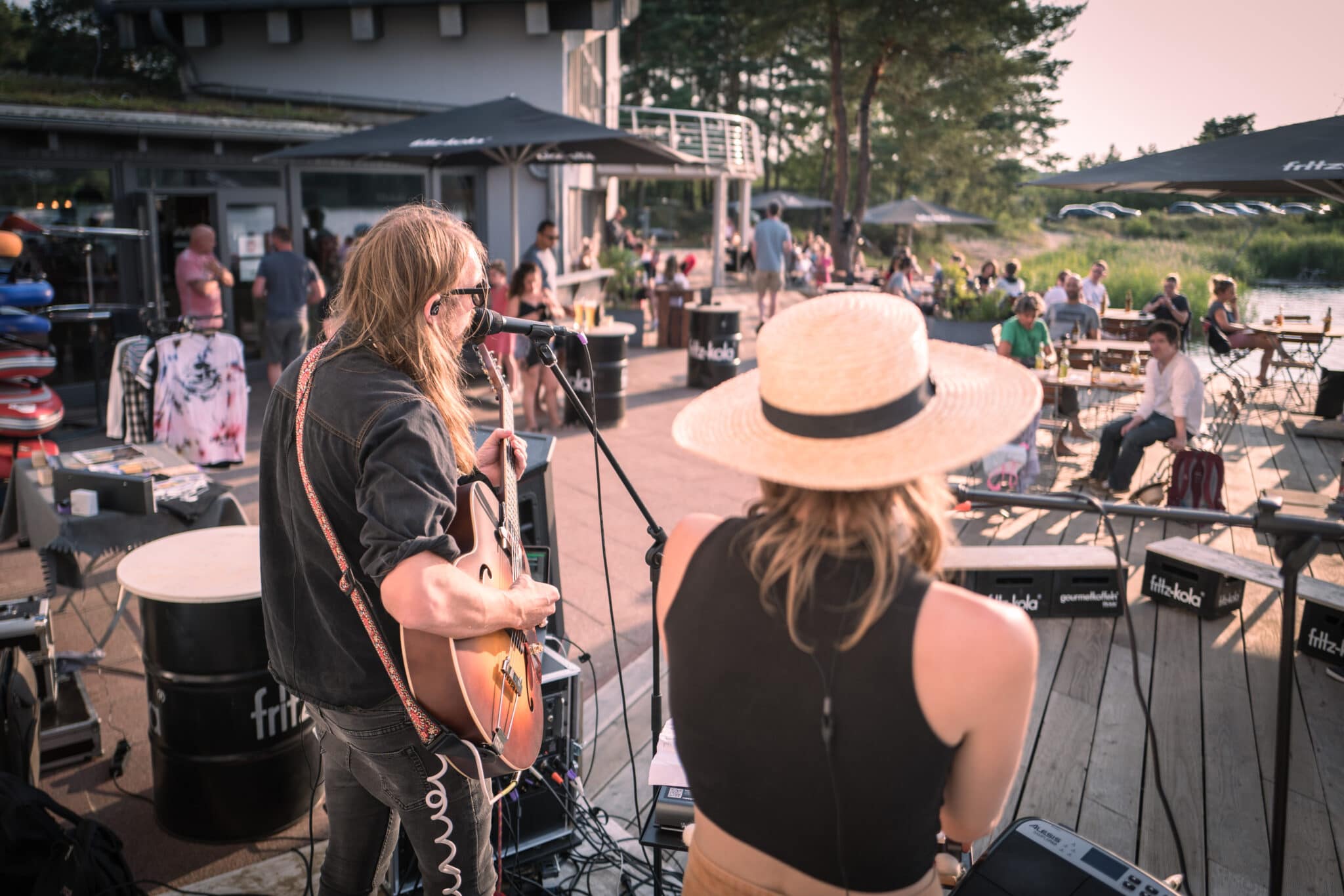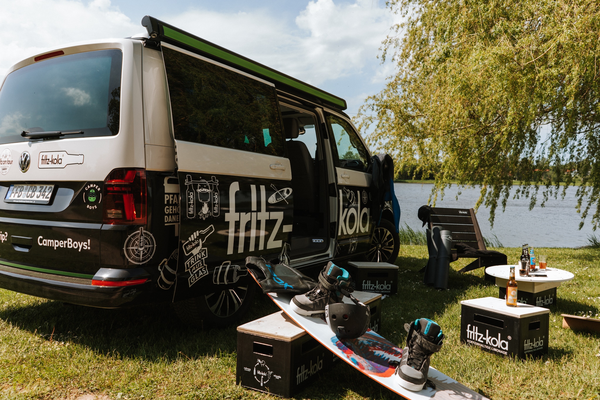 Dann kamen vielerorts die Autokinos und Autokonzerte auf, wodurch wir vorhandene Partner unterstützen und auch neue hinzugewinnen konnten. So haben wir gemeinsam das erste Pandemiejahr gut überstanden. Im Winter wollten wir dann aber neue Ideen entwickeln, wie wir auch ohne große Festivals wieder mehr mit den Leuten in Kontakt kommen können. Daraus entstand die Aktion fritz on tour, bei der zwei gebrandete Bullis den Sommer über zahlreiche Spots in Deutschland und Österreich angefahren und dort auf Campingplätzen und Wasserskianlagen Festivalfeeling verbreitet haben. Angeboten wurden beispielsweise Live-Musik, Workshops, Kunst-Sessions und allerlei sportliche Aktivitäten.