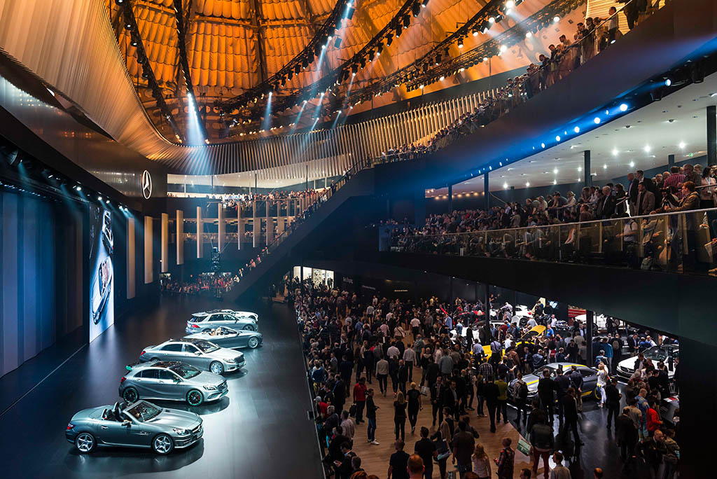 Die Inszenierungen für Mercedes-Benz sind, u. a. natürlich durch die Festhalle bedingt, von Großzügigkeit gekennzeichnet. Das scheint ein durchgehender Faden, eine Philosophie zu sein.