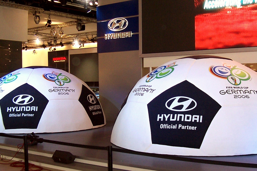 Unter diesen XXL-Bällen verbargen sich die neuen Automodelle von Hyundai auf der IAA. (Bild: prop-art)