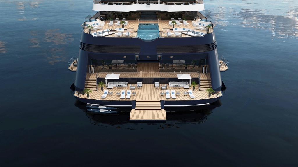 Das Heck moderner Cruise Yachts: ein Spielfeld für Eventplaner:innen (Bild: OceanEvent GmbH)